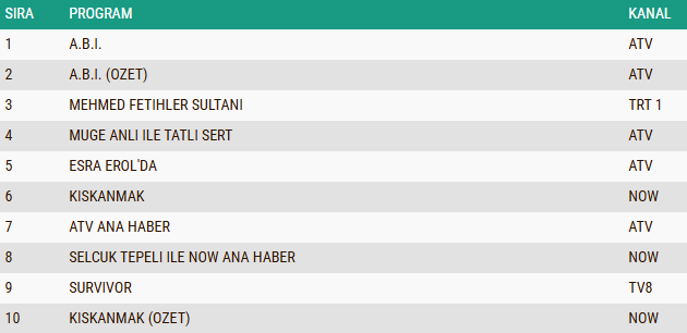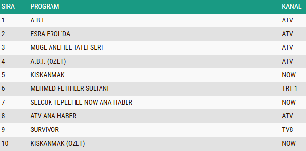 ABC1 REYTİNG SONUÇLARI