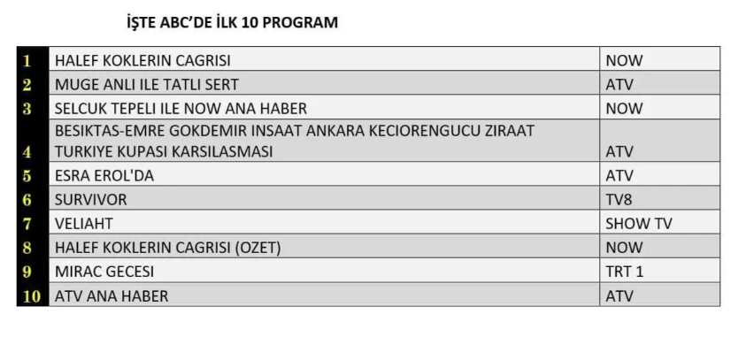 ABC1 REYTİNG SONUÇLARI