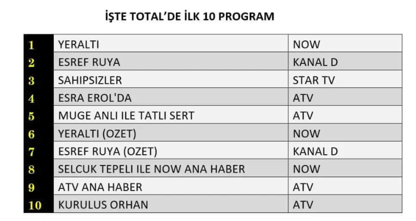 TOTAL REYTİNG SONUÇLARI