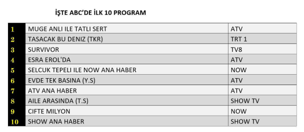 ABC1 REYTİNG SONUÇLARI