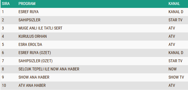 ABC1 reyting sonuçları, diziler ve çeşitli televizyon programlarının izleyiciler üzerinde belirgin bir etki yarattığını gösterdi. Zirvede özellikle Kanal D ve ATV'nin sevilen yapımları yer alırken, haber ve magazin içerikleri de güçlü performansları ile öne çıktı. Gecenin en çok izlenen yapımları arasında yer alan bu programlar, seyircilerin ilgi ve beğenisini büyük ölçüde toplamayı başardı.