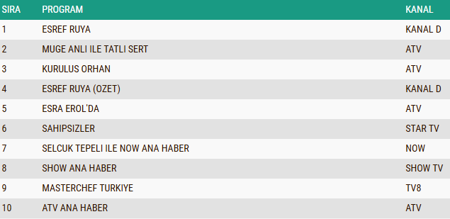 21 Ocak 2026 Çarşamba Reyting Sonuçları