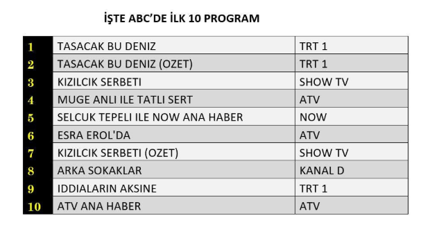 ABC1 REYTİNG SONUÇLARI