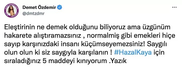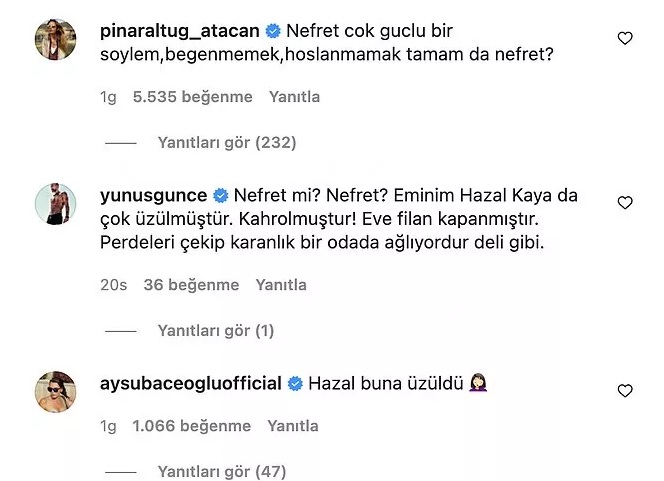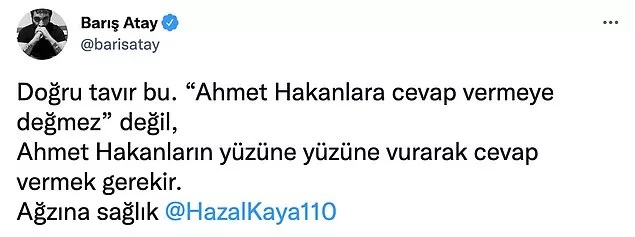 Aralarında Şahan Gökbakar, Tuğba Büyüküstün, Reha Özcan, Demet Özdemir, Nur Fettahoğlu, Ezel Akay, Mahsun Kırmızıgül, Cem Ceminay ve Gonca Vuslateri’nin de bulunduğu pek çok ünlü isim Hazal Kaya’nın yanında durarak nefret içerikli söyleminden dolayı Ahmet Hakan’ı eleştirdi.