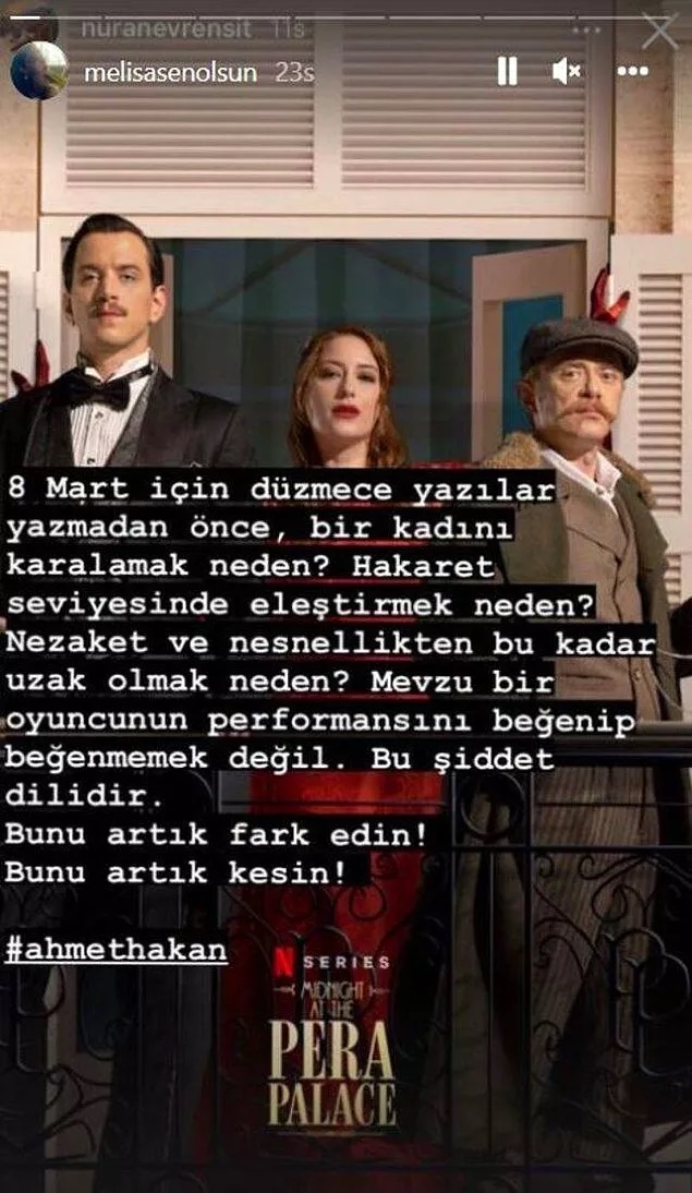 Başrolünde Hazal Kaya’nın rol aldığı Netflix’te merakla yayınlananması beklenen dizisi Pera Palas’ta Gece Yarısı, 3 Mart’ta izleyicilerle buluştu. Pera Palas’ta Gece Yarısı dizisi Charles King’in ‘Midnight At The Pera Palace’ kitabından uyarlanmıştır. Macera dolu dizinin oyuncu kadrosunda, Hazal Kaya, Selahattin Paşalı, Engin Hepiler, Tansu Biçer, Hakan Dinçkol, Ergun Metin gibi isimler yer alırken, Hazal Kaya dizide Gazeteci Esra karakterine hayat veriyor. Dizideki oyunculuğunu ağır bir dille eleştiren Hürriyet Gazetesi Genel Yayın Yönetmeni Ahmet Hakan, ünlülerden peşpeşine tepkiler almaya devam ediyor. İşte yaşananlar ve ünlülerin Ahmet Hakan’a olan tepkileri…