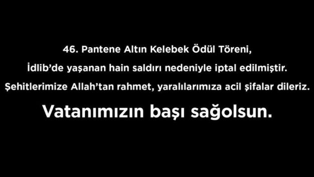 Her yıl televizyon ve müzik dünyasında başarılı olmuş sanatçı ve yapımlara verilen Altın Kelebek Ödülleri bu yıl sahiplerine kavuşamadı. Hürriyet gazetesinin eki Kelebek okurlarının oylarıyla seçilen başarılı kişileri ödüllendirme töreni bu sene İdlib şehitleri nedeniyle iptal edildi. Bilindiği üzere İdlib'de 27 Şubat 2020 akşamı hain Esed rejimi tarafından Türk Silahlı Kuvvetleri unsurlarına yönelik düzenlenen hain saldırıda 33 askerimiz şehit düştü. Yaşanan bu elim olayın sonucu birçok organizasyon ve eğlence iptal edildi. 46.sı düzenlenecek olan Altın Kelebek Ödülleri organizasyonu da bu iptalden payını aldı.