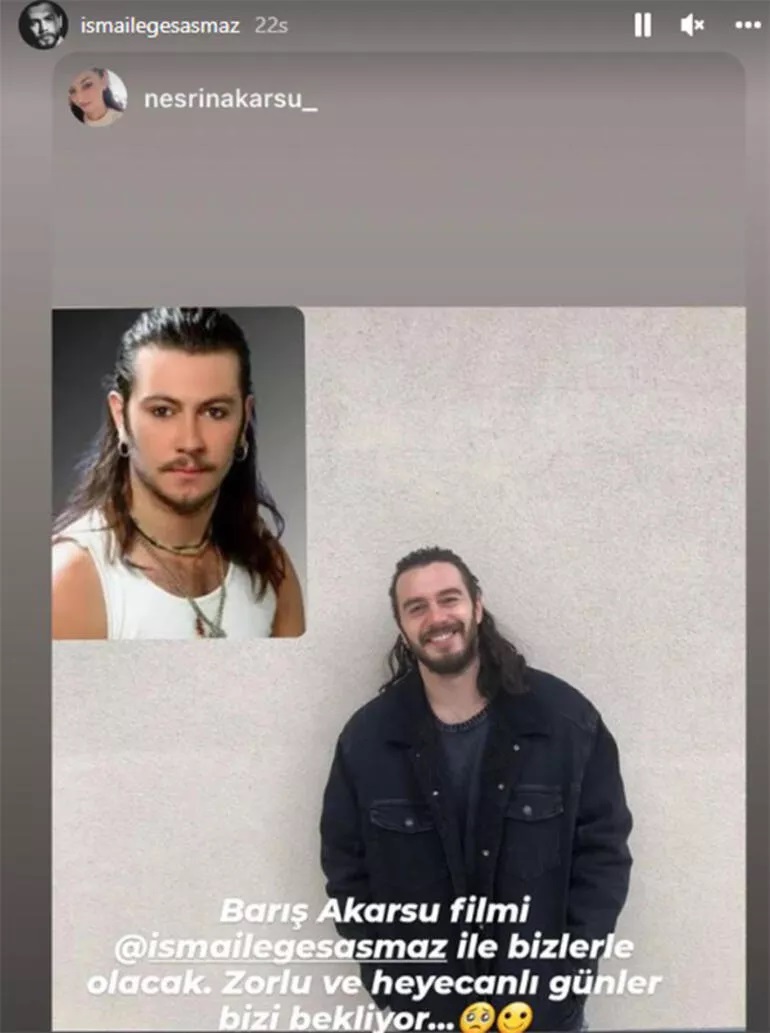 Barış Akarsu’nun kız kardeşi Nesrin Akarsu, İnstagram hesabından yaptığı paylaşım ile haberi duyurmuştu. ‘’Barış Akarsu filmi İsmail Ege Şaşmaz ile bizlerle olacak zorlu ve heyecanlı günler bizi bekliyor’’ Ünlü oyuncu da söz konusu gönderiyi kendi hesabında paylaşmıştı.