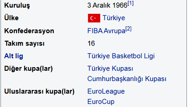 Diğer adıyla Tahincioğlu Basketbol Süper Ligidir. 1966 yılında Türkiye Basketbol Federasyonu tarafından kuruldu. Ülkemizde en üst düzey profesyonel basketbol ligi olan süper ligi aynı zamanda ULEB'e göre Avrupa'nın en zorlu 4. ligidir. 16 takımla oynanan Basketbol Süper Liginde kurulduğu sezondan günümüze kadar toplam 78 takım mücadele etme hakkı elde etti. Günümüzde 5+1 yabancı kontenjanı kuralı uygulandığı süper ligimizde takımlar sınırsız sayıda yabancı ile sözleşme imzalayabilmektedir.