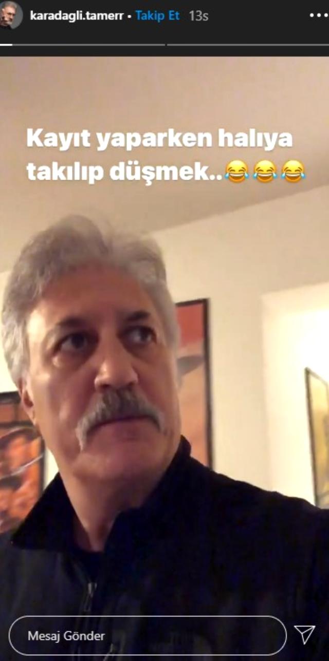Komedi rolleriyle zihinlere kazınan ve sosyal medyaya mesafeli duran ünlü oyuncu Tamer Karadağlı da modaya uydu ve sırf hayranları için pek de alışık olmadığı bir canlı yayın yapmak istedi. Sosyal medya hesabından canlı yayın yaparken bir anda yere kapaklanan ünlü oyuncu neye uğradığını şaşırdı. Vaziyeti gülerek kurtarmaya çalışan oyuncunun “Halıya takılıp düştüm.” diyerek açıklama yapması dikkat çekti. Hem canlı yayın kazasını hem de peşinden yaptığı açıklamayı yayınlayan Tamer Karadağlı o anları "Kayıt yaparken halıya takılıp düşmek" notuyla o anları paylaştı. Canlitv olarak Tamer Karadağlı’ya geçmiş olsun diliyoruz.