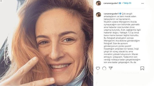 Şu sıralar rol aldığı Sar Tv ekranlarındaki Menajerimi Ara dizisinde Feris karakteriyle seyircinin karşısına çıkan ve seyirci tarafından çok sevilen başarılı ve usta oyuncu Canan Ergüder’den ne yazık ki kötü bir haber geldi. Magazin basını ve sosyal medyada yer alan haberler başarılı oyuncunun sevenlerini bir anda şoka uğratırken usta oyuncu Canan Ergüder de sosyal medya hesabından yaptığı bir paylaşımla yazılanları ve haberleri doğruladı. Ünlü oyuncu meme kanserine yakalandığını açıkladı ve moralinin iyi olduğunu tedavisine başlanıldığını açıkladı. Seyirciyi ve usta oyuncunun sevenlerini büyük bir şoka uğratan haber magazin gündemine de damgasını vurdu. Evli ve bir çocuk annesi olan canan Ergüder’in tedavisine de hemen başlandığı öğrenildi.
