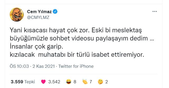 Komedyen Cem Yılmaz, yazar Rüstem Batum'un Youtube kanalına konuk olarak vefa örneği gösterdi. Cem Yılmaz "dostum, ağabeyim" dediği Rüstem Batu'nun programına katılarak yıllar önce kendisine sahip çıkan Batum'a teşekkür etti. Ertesi gün de vefa örneği göstererek katıldığı programın videosunu sosyal medya hesabından paylaştı. Paylaşımın altına düştüğü not, gazeteci Enver Aysever'i fena halde kızdırdı. İşte o not: "5 yıl önceki buluşmamızdan sonra sevgili Rüstem abimle sohbetimiz. Türkiye'de ilk defa bir afişte 'Stand up' yazdığında o afiş Rüstem abinin afişiydi."