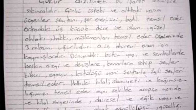 Uğur Bey’in dikkat çekmek istediği yazıyı kim veya kimler yazdı bilmiyoruz. Amaçlarını da bilmiyoruz ancak geçmişte duvar yazılarından çok kanın aktığı güzel ülkemizde yine birileri aynı provokasyonları yapmaya çalışıyor olabilir. Aman dikkat diyerek haberciliğimiz gereği şehrin muhtelif yerlerine asılan yazıyı birkaç cümleyle özetliyoruz. "Çukur dizisindeki bu işaret, dinimizce sakıncalıdır. Çünkü üstteki ve alttaki yarım üçgenler şeytanı, şer enerjisini, batılı temsil eder. Ortadaki üç küçük daire ise İslam'ı, güzel ahlakı, hakkı, Müslümanları temsil eder. Dinimizde 3 rakamı uğurludur. O üç daireyi onun için koymuşlardır. Dünyadaki bütün yazı ve sembollerde keskin çizgi ve dönüşlere, kenarlara sahip şeyler kibri, egoyu, kötülüğü yani şeytanla ilgili şeyleri temsil eder. Halbuki hilal; İslamiyet'i ve bağımsızlığımızı temsil eder aynı şekilde Arapça yazıda ve hilal simgesinde, dairesel ve eğik yazı ve semboller; tevazu, alçak gönüllülüğü, güzelliği ifade eder. Eğik yazı ve semboller gözleri yormazlar, bu da Allah'ın bir mucizesidir. Keskin çizgili alfabetiği ve sembolleri kullanan ülkelerde gözlük kullanımı fazladır, göz sağlığı bozulduğu için. Özetle yukarıdaki sembol şeytanın İslamiyet'i 2 üçgen arasına hapsetme çabasının sembolüdür."