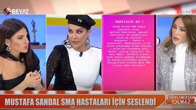 Deniz Akkaya'nın SMA hastası çocuklar ile ilgili yapmış olduğu açıklama gündemde bomba etkisi yarattı. Beyaz TV ekranlarında yayınlanan Söylemezsem Olmaz programına konuk olarak katılan Akkaya, Mustafa Sandal'ın paylaşımlarına "SMA hastalarından önce aylardır evde işsiz oturan müzisyenler var. Önce onlara sahip çıksın" dedi. Akkaya'nın bu sözlerine sosyal medya kullanıcılarının tepkileri gecikmedi.
