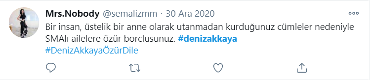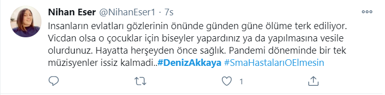Sandal'ın, yaptığı paylaşımda "Günde pek çok SMA bağış paylaşım ricası geliyor, bazılarını yapıyor, bazılarını es geçebiliyor sonra da suçluluk duyuyoruz. Sanki o hastalığın sebebiymişiz, bizim yüzümüzden o çocuklar ölecekmiş gibi manevi ızdırap duyuyoruz. Bu adil değil, devletin bizzat bize sosyal medyaya bırakmadan, bu konuyu halletmesi gerekir" ifadeleri yer alıyordu.