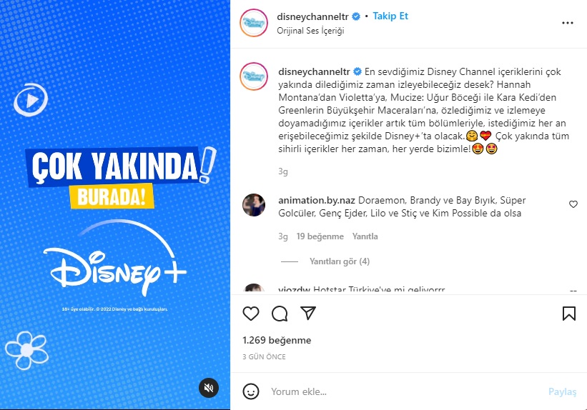 Disney Channel İnstagram hesabından da resmi açıklama geldi:
