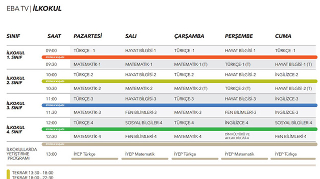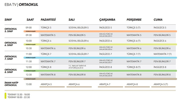 EBA TV HAFTALIK DERS PROGRAMI