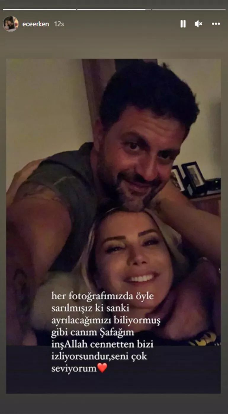 40 gün önce eşini kaybeden ece Erken uzun süre kabuğuna çekildi. Show Tv'de uzun yıllar sunuculuk yapan Ece Erken eşinin ölümünden sonra sunuculuğu bıraktı. Sadece sosyal medya hesabından yaptığı paylaşımla sevenleriyle iletişime geçen 43 yaşındaki ünlü isim, eşiyle sarıldığı pozu paylaştı. Pozun altına ise okuyanları duygulandıran şu notu düştü: "Her fotoğrafımızda öyle sarılmışız ki sanki ayrılacağımızı biliyormuş gibi canım Şafak'ım. İnşallah cennetten bizi izliyorsundur, seni çok seviyorum"