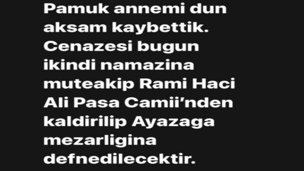 Dizi ve sinema filmlerinde rol alan ve son olarak Destan Dizisinde Tutkun karakterine hayat veren genç ve güzel oyuncu Elif Doğan annesi Dilek Doğan’ı kaybetti. Güzel oyuncu sosyal medya hesabından annesini kaybettiğini sevenlerine ve takipçilerine duyururken acısını gizleyemedi. Elif Doğan annesi Dilek Doğan’ı kaybettiğini bildirdiği paylaşımında “Pamuk annemi dün akşam kaybettik. Cenazesi bugün ikindi namazına müteakip Rami Hacı Ali Paşa Camii’nden kaldırılıp Ayazağa Mezarlığına defnedilecektir” ifadelerini kullandı. Genç oyuncunun büyük bir acı yaşadığı ve sevenleri ve yakın arkadaşlarından binlerce taziye mesajı aldığı öğrenildi. Genç oyuncunun annesi Dilek Doğan’ın cenazesi ise kılınan cenaze namazının ardından Ayazağa Mezarlığında toprağa verildi. Genç oyuncunun bu sırada büyük üzüntü içinde olduğu görüldü.