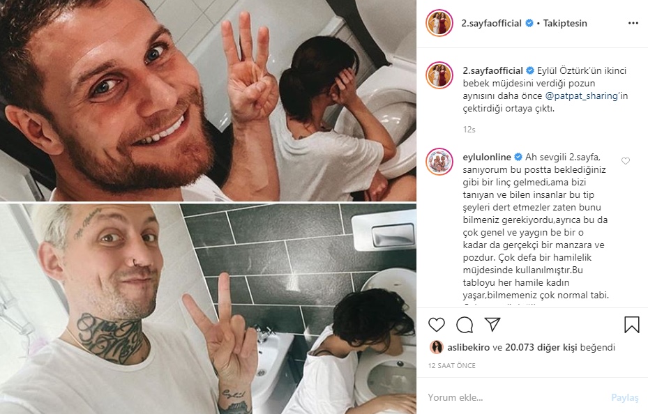 2. Sayfa programının sunucuları, Eylül Öztürk'ün paylaşımı için, "Bu poz çok genel, yaygın ve bir o kadar da gerçekçi bir manzara ve pozdur. Çok defa bir hamilelik müjdesinde kullanılmıştır. Bu tabloyu her hamile kadın yaşar, bilmemeniz çok normal tabi. Çok önemli değil ama zaten bundan daha fazlasını size verebilecek bir yaşantımız yok bizim. Ancak bunlarla idare edin artık ne yapalım" şeklinde yaptığı açıklamalara tepki gösterdi. Hatta açıklamada geçen "Bu tabloyu hamile kadınlar bilir, bilmemeniz çok normal" sözleri ile hamile kalamayan bir çok bayanın kalplerini kırdıklarını ifade etti. Eylül Öztürk bu duydukları karşısında adeta deliye döndü. Söylediklerinin çarpıltıldığını ve linç ettirilmeye çalışıldığını söyleyen Eylül Öztürk, sessizliğini sosyal medyadan yaptığı açıklamalar ile bozdu.