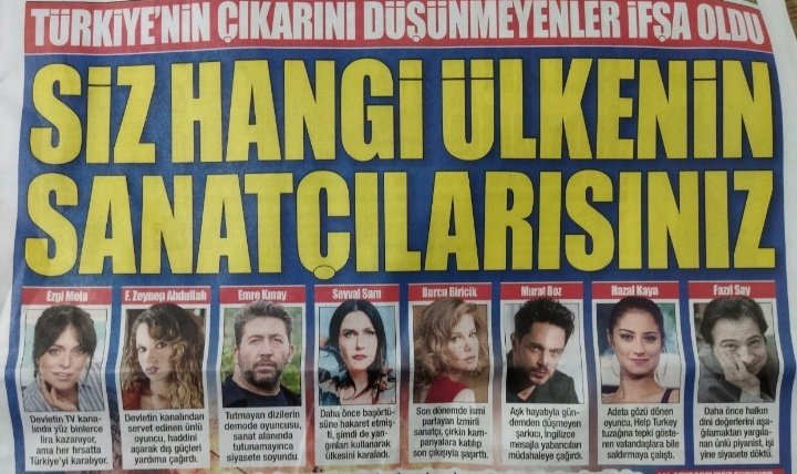 Manavgat'ta başlayan orman yangınları yerleşim yerlerine de sıçrayınca tam bir felaket yaşandı. Türkiye'nin çeşitli noktalarında yaklaşık 10 gündür yangınlar devam ediyor. Bazı noktalarda kontrol altına alınan yangınlar farklı tartışmaları da beraberinde getirdi. Sosyal medyada fenomen ve ünlü isimlerin katıldığı 'Global Call' kampanyası ise bazı kesimler tarafından tepki topladı. Sönmeyen yangınlar için dünyadan yardım talebinde bulunan milyonlarca sosyal medya kullanıcısı hem iktidar hem de bazı kesimler tarafından hedef gösterildi. Yeni Asır gazetesinin bügünkü manşeti ise konuyu çok başka bir yere taşıdı. Gazetede ünlü oyuncu ve sanatçıların fotoğrafları yayınlandı ve "Siz hangi ülkenin sanatçılarısınız" şeklinde bir başlık atıldı.