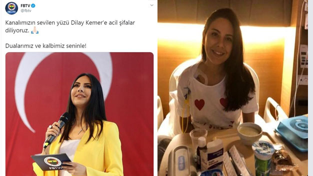 Fenerbahçe Tv’nin güzel sunucularından Dilay Kemer daha öncede tedavi gördüğü kan kanseri hastalığından dolayı bir kez daha hastanede yoğun bakıma alındı. Güzel sunucunun hastaneye kaldırıldığını “kanalımızın sevilen yüzü Dilay Kemer’e acil şifalar diliyoruz. Dualarımız ve kalbimiz seninle” ifadeleriyle Fenerbahçe Tv duyurdu. Kan kanseri olan ve daha önce de aynı hastalıktan tedavi gören Dilay Kemer durumunun ağırlaşması üzerine yoğun bakıma alındı. Güzel ve başarılı sunucunun tedavisine hastanede yoğun bakımda devam edildiği belirtildi. Daha önce paylaştığı bir mesajında Kemer “Merhaba… Uzun zaman oldu paylaşım yapmayalı. Açıkçası Nasılsın sorusuna verecek net bir cevabım olana kadar sessiz kalmaya devam edecektim. Çünkü iyiyim desem iyi değilim, kötüyüm desem kötüde değilim ama iyileşemedim arkadaşlar. Hala hastane – ev arası mücadele dolu bir hayat yaşıyorum. Tahmin edersiniz ki bu durumdayken en duymak ve cevaplamak istemediğim soru nasıl olduğum. Her Dakika bunu konuşmak, herkese tek tek anlatmak moralimi bozuyor. Zaten doktorum da hastalık konuşmayı yasakladı ama bütün o güzel mesajlar için, endişeleriniz için teşekkür ederim ve böyle hayırlı bir gecede yine dualarınızda olmak isterim” ifadelerini kullanmıştı.