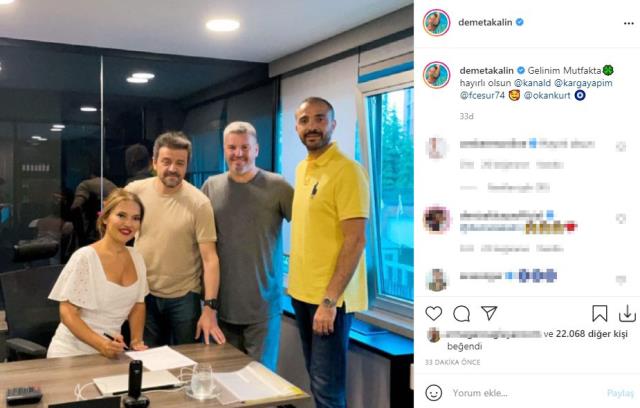 Gelinim Mutfakta programı için Karga Yapım ile anlaşma yapan Demet Akalın, yeni sezonda ekranlarda olacağının haberini duyurdu. Geçtiğimiz aylarda Demet Akalın ile Alişan'ın ekmeğiyle oynadı! iddialarına karşılık Demet Akalın,