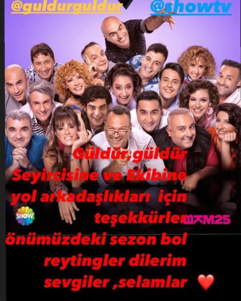 Yeni sezonda da ekranda olacak Güldür Güldür Show sezon finali yapmıştı. İki oyucuyla yolların ayrılması yeni sezonda farklı oyuncuların olup olmayacağı sorusunu da beraberinde getirdi. Güldür Güldür Show kadrosunda Ali Sunal, Onur Buldu, Doğa Rutkay, Alper Kul, Uğur Bilgin, Aylin Kontente, Onur Atilla gibi isimler yer alıyor. Güldür Güldür'den ayrılan Murat Akkoyunlu da bir notla birlikte ekip fotoğrafı paylaşarak veda etti. Akkoyunlu, " Güldür Güldür seyircisine ve ekibine yol arkadaşlıkları için teşekkürler. Önümüzdeki sezon bol reytingler dilerim" ifadelerini kullandı.