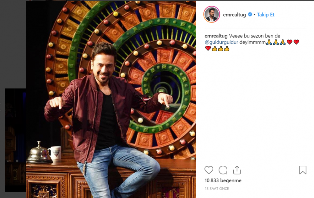 Sunal'ın açıklamalarının ardından Emre Altuğ, Güldür Güldür sahnesinde çekildiği fotoğrafını "Veeee bu sezon ben de Güldür Güldür'deyim" notuyla paylaştı.