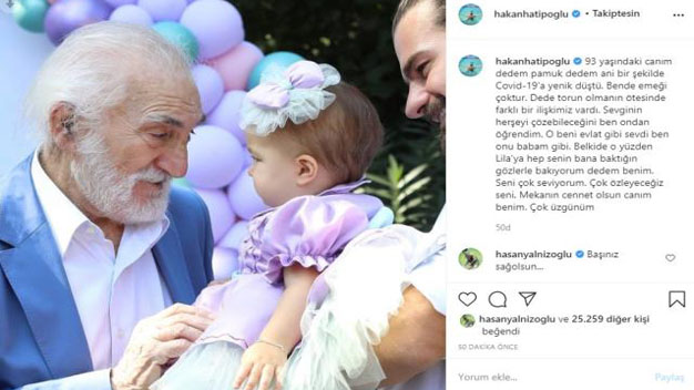 Ünlü sunucu Hakan Hatipoğlu 93 yaşında koronavirüs sebebiyle hayatını kaybeden ded3sinin ardından sosyal medya hesabından duygulandıran bir paylaşımda bulundu. Hatipoğlu paylaşımında “93 yaşındaki canım dedem, pamuk dedem ani bir şekilde Covid – 19’a yenik düştü. Bende emeği çoktur. Dede torun olmanın ötesinde farklı bir ilişkimiz vardı. Sevginin her şeyi çözebileceğini ben ondan öğrendim. O beni evlat gibi sevdi ben onu babam gibi. Belki de o yüzden Lila’ya hep senin bana baktığın gözlerle bakıyorum dedem benim. Seni çok seviyorum. Çok özleyeceğiz seni. Mekanın cennet olsun canım benim. Çok üzgünüm” ifadelerini kullandı. Duygusal bu paylaşımın ardından pek çok seveni Hakan Hatipoğlu’na başsağlığı mesajları gönderdi. Bizde Hakan Hatipoğlu’na başsağlığı ve dedesine Allah’tan rahmet diliyoruz.