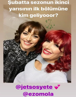 Puhutv ekranlarında yayınlanan ve 3. Sezonunda olan jet sosyete uzun bir ayrılıktan sonra yeniden seyircisiyle buluşuyor. Dizinin yayınlanacak son bölümü 14 Şubat’ta izleyici ile buluşacak ve diziye güzel oyuncu Ezgi Mola konuk oyuncu olarak katılacak. Dizinin senaristi Gülse Birsel’in sosyal medya hesabından duyurduğu bu gelişmeyle Jet Sosyete’nin başlayacağı tarihte kesinleşmiş oldu. Gülse Birsel ayrıca güzel oyuncuyla çekilmiş fotoğrafını da paylaştı. Bilindiği gibi Jet Sosyete son olarak Yılbaşı özel programında 27 Aralıkta Ata Demirer’in konuk olarak katıldığı yayında ekrana gelmiş ve ardından yayınına ara vermişti. Dizi artık bir gelenek haline gelen bölümlerinde konuk oyuncu oynatma geleneğini de Ezgi Mola’yla sürdürüyor.