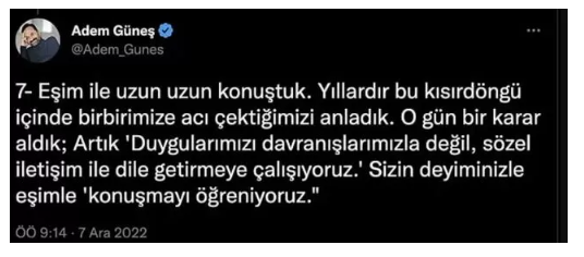 Olay bir anda sosyal medyada gündem oldu. Yaşadıkları bir tartışmayı anlatan Kadir Doğulu sosyal medyada madara olmasına yol açacak o anıyı şu cümlelerle anlattı: "Bir keresinde çok büyük bir tartışma yaşadık. Ben kapıyı vurup çıktım. İşlerimi halledip akşam eve geldiğimde koltukta uyuyakalmıştı. Normalde onu hayatta orada yatırmaz kucağıma alır yatağa götürürüm. O gün yapmadım çünkü kızgındım. Yatak odasına gidip yattım. Sabah yanıma geldi. İkimiz de kızgınız. Ben acaba biraz ara mı versek diye sordum o da 'tamam verelim' dedi. Birkaç saat geçti, evde birlikte vakit geçirdik. Ben tam dışarı çıkacakken geldi boynumda öptü. Sonra oturup konuştuk. Konuşurken ben dün gece eve geldim dedim o da 'fark ettim' dedi. Ben seni normalde yukarı götürürdüm ama götürmedim dedim. O da 'beni almanı çok bekledim' dedi. Ben de çok bekledim 'acaba aç mısın?' diye soracaksın diye dedim. O gün bizim miladımız var. Konuşarak çok şey anlaşılabiliyor"