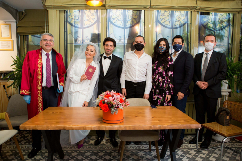 Atv ekranlarında fırtına gibi esen Kuruluş Osman’ın en baskın karakterlerinden biri olan Selcan Hatun’u oynayan Didem Balçın düğün salonlarının kapalı olduğu karantina günlerinde sessiz sedasız evlenmesi magazin dünyasının birinci gündemini teşkil etti. Didem Balçın ve eşi avukat Can Aydın düğün fotoğraflarını sosyal medyada paylaşınca kısa sürede ilgi odağı oldu. Corna tedbirlerine uygun motifte evlenen çift ve az sayıdaki davetliler maske taktı. Yüzlerindeki mutluluk ve maskelerle poz veren çiçeği burnundaki gelin ve damadın nikâh şahitleri ise İdil ve Mert Fırat oldu.