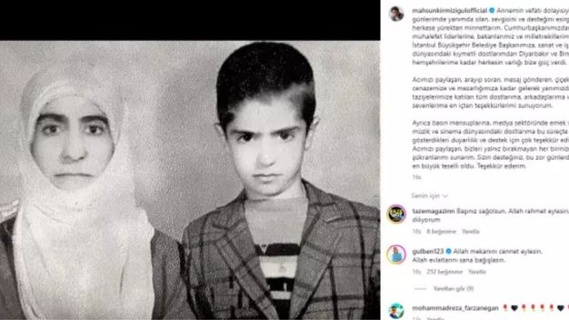 Annesinin ölümüyle sarsılan sanatçı Mahsun Kırmızıgül, geçtiğimiz günlerde aktif kullandığı sosyal medya hesabından annesiyle çocukluk zamanlarında çekilen bir fotoğrafı paylaşarak şu ifadelere yer vermişti: "Annemin vefatı dolayısıyla bu zor günlerimde yanımda olan, sevgisini ve desteğini esirgemeyen herkese yürekten minnettarım. Cumhurbaşkanımızdan ana muhalefet liderine, bakanlarımız ve milletvekillerimizden İstanbul Büyükşehir Belediye Başkanımıza, sanat ve iş dünyasındaki kıymetli dostlarımdan Diyarbakır ve bingöl'deki hemşehrilerime kadar herkesin varlığı bize güç verdi. Acımızı paylaşan, arayıp soran, mesaj gönderen, çiçek yollayan, cenazemize ve mezarlığımıza kadar gelerek yanımızda olan, taziyelerimize katılan tüm dostlarıma, arkadaşlarıma ve sevenlerime en içten teşekkürlerimi sunuyorum. Ayrıca basın mensuplarına, medya sektöründe emek verenlere, müzik ve sinema dünyasındaki dostlarıma bu süreçte gösterdikleri duyarlılık ve destek için çok teşekkür ediyorum. Acımızı paylaşan, bizleri yalnız bırakmayan her birinize sonsuz şükranlarımı sunarım. Sizin desteğiniz, bu Zor günlerde benim için en büyük teselli oldu. Teşekkür ederim."