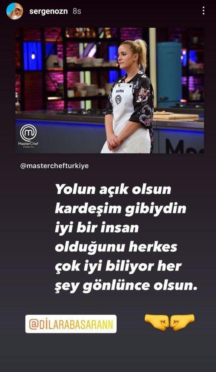 MasterChef Türkiye’de son viraj olan final haftasına girildi. Final haftasına Sergen, Hasan, Eren, Tahsin kaldı. Yarışmada son haftaya kadar başarıyla mücadele eden Dilara ise yarışmaya beşinci olarak veda etti. Yarışmada Sergen ile arasında aşk dedikoduları çıkan ve ancak taraflarca kabul edilmeyen iddialara ise son noktayı Sergen koydu. Sergen Dilara’nın elenmesi üzerine sosyal medya hesabından bir paylaşımda bulunarak Dilara’ya veda etti. Sergen paylaşımında “yolun açık olsun. Kardeşim gibiydin. İyi bir insan olduğunu herkes çok iyi biliyor. Her şey gönlünce olsun” ifadelerini kullandı. Sergen’in “kardeşim gibiydin” kelimeleri ikili arasındaki aşk iddialarını sona erdirdi.