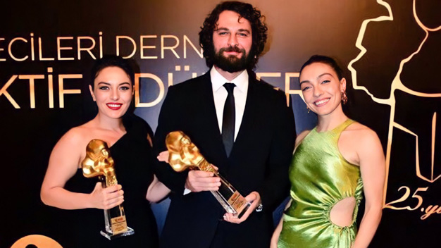 TRT1'de Salı akşamları yayınlanan Masumlar Apartmanı dizisi iki sezondur başarılı bir şekilde yoluna devam ediyor. Güçlü oyuncu kadrosu ve psikolojik hikayesiyle dikkat çeken dizi ilk günden beri beğeniyle izleniyor. Psk. Gülseren Budayıcıoğlu'nun gerçek hayat hikayelerinden derlediği kitabından uyarlanan Masumlar Apartmanı Altın Objektif Ödül töreninde de geceye damga vurdu. Oyuncularının tamamına yakının katıldığı geceden Masumlar Apartmanı 3 ödülle ayrıldı. Ezgi Mola ve Birkan Sokullu Yılın En İyi Dizi Oyuncu Ödülü'nü alırken Masumlar Apartmanı dizisi de Yılın En İyi Dizisi seçildi.