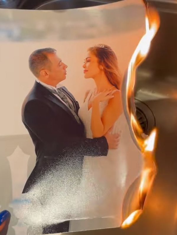 Ünlü fenomen Cansu Miasu Özlevi, Sosyal medya hesabından düğün fotoğraflarını yaktığı anları paylaştı.