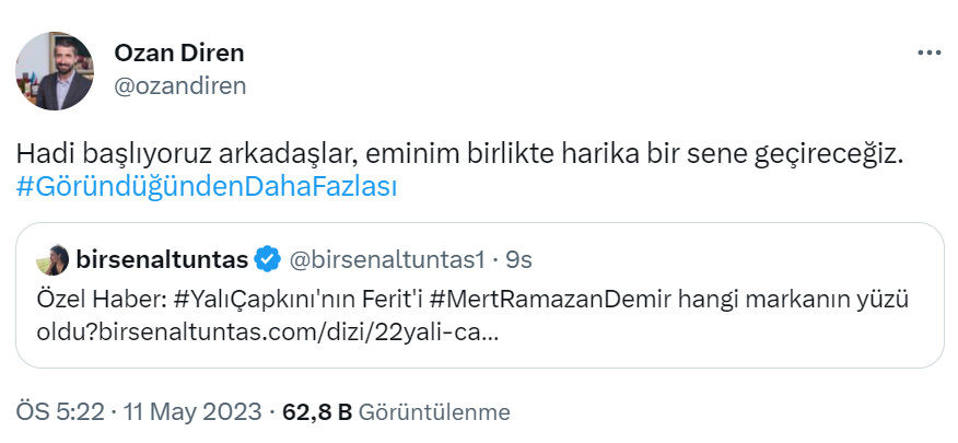 Star Tv’nin reyting rekortmeni dizisinin başrolü Ferit Korhan karakterini büyük bir başarıyla canlandıran Mert Ramazan Demir son dönemin en popüler ve ilgi çeken isimlerinin başında geliyor. Yalı Çapkını dizisinde oynarken bir dijital platformda yayınlanan dizi de de rol almaktan geri kalmayan yakışıklı oyuncu bu defa da bir markanın reklam yüzü olmak üzere el sıkıştı..jpg)