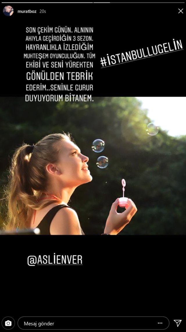 Son yıllarda oyunculuğu ve güzelliğiyle büyük beğeni toplayan Aslı Enver'in yer aldığı İstanbullu Gelin dizisi yarın akşam final bölümüyle sona erecek. Güzel oyuncunun şarkıcı sevgilisi Murat Boz'dan tebrik mesajı geldi!