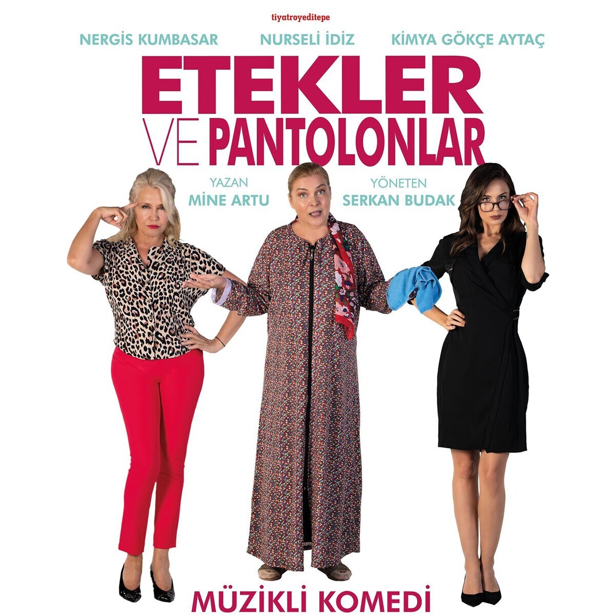 Tiyatro Yeditepe’nin yapımcılığını üstlendiği, Mine Artu’nun yazdığı ve Serkan Budak’ın yönettiği oyunda; Nergis Kumbasar ‘Nurcan’, Nurseli İdiz ‘Aysel’, ve Kimya Gökçe Aytaç ‘Melisa’ karakterini canlandırıyor. Usta isimlerin bir araya geldiği oyunda erkek kadın ilişkileri anlatılıyor. Oyun iki farklı yaratılışa sahip erkeğin ve kadının dünyasına ince ince dokunuyor. ‘Etekler ve Pantolonlar’ kendi seçimlerini yok sayan, kendisine dayatılan hayatı yaşayanların hikayesini anlatıyor.