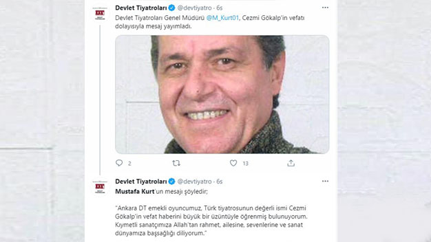 Son zamanlarda Türk Tiyatro, dizi ve sinema sektöründen pek çok usta isim bir bir hayatını kaybetti. Yerleri kolay kolay doldurulamayan bu değerlerin kaybıyla tiyatro ve sinema sektörü büyük kayıplar yaşarken geride kalan oyuncularda hayatını kaybeden arkadaşlarının acısıyla baş başa kaldı. Bugün de yine bir usta isim, Türk Tiyatrosuna büyük emekler vermiş, onlarca oyunda oyunculuk ve yönetmenlik yapmış ve aynı zamanda yabancı filmlerde seslendirme sanatçılığı da yapan tiyatro oyuncusu Cezmi Gökalp geçirdiği kalp krizi sebebiyle hayatını kaybetti. Bu acı kaybın magazin ve basın yayın organlarında yer almasıyla birlikte usta oyuncunun sevenleri ve yakınları derin bir üzüntü içine girdi. Kalp krizi sebebiyle hayata veda eden usta oyuncunun naşı yine aynı gün defnedildi.