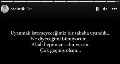 Hadise: Uyanmak istemeyeceğimiz bir sabaha uyandık.Ne diyeceğimi bilmiyorum.Allah hepimize sabır versin.Çok geçmiş olsun..jpg)