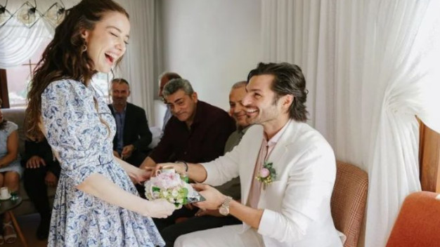 Kiraz mevsimi dizisinde birlikte rol alan ve o günden itibaren aşk yaşayan Serkan Çayoğlu ve Özge Gürel aile arasında düzenlenen törenle nişanlandı.