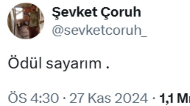 Bu kararın ardından Arka Sokaklar dizisinin sevilen oyuncusu Şevket Çoruh tepkisini ortaya koymaktan çekinmedi. Ünlü oyuncu kişisel sosyal medya hesabından yapmış olduğu paylaşımda "Ödül sayarım" mesajını yayınladı.