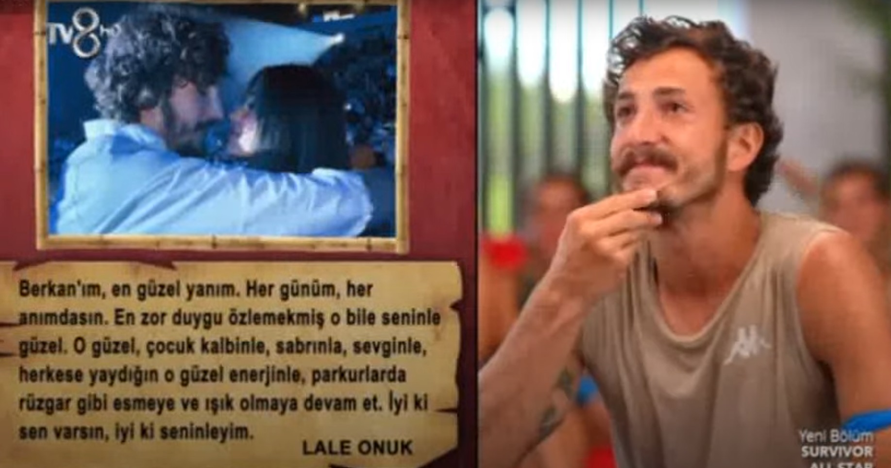 Berkan Karabulut'a ise sevgilisi Lale Onuk'tan gelen mesaj herkesi hayran etti. Berkan gözyaşlarına hâkim olamadı. Takım arkadaşları ise çok güzelsiniz bu nasıl bir fotoğraf diyerek alkışladı. "Biz yemek diyoruz Berkan sabahlara kadar lale diyor" diyen Hikmet ise herkesi gülümsetti.