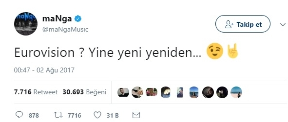 Türkiye 2018 Eurovision'a yine yeniden Manga ile katılıyor!
