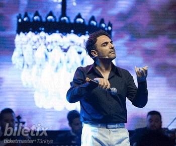 Uğur Aslan, 8 kişilik arabesk orkestra eşliğinde canlı olarak arabesk şarkılar söylüyor.