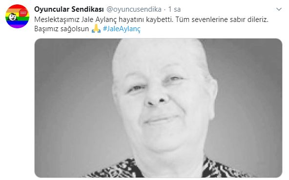 Oyuncular Sendikası ünlü oyuncu Aylanç'ın vefat haberini verdi. Sendikanın resmi twitter hesabından Aylanç'ın ölüm haberi, "Meslektaşımız Jale Aylanç hayatını kaybetti. Tüm sevenlerine sabır dileriz. Başımız sağolsun" ifadeleriyle kamuoyuyla paylaşıldı. Ankara Sanat Tiyatrosu da resmi sosyal medya hesabından Jale Aylanç'ın vefat haberini duyurdu. "Değerli oyuncumuz Jale Aylanç’ı kaybetmenin üzüntüsünü yaşıyoruz."