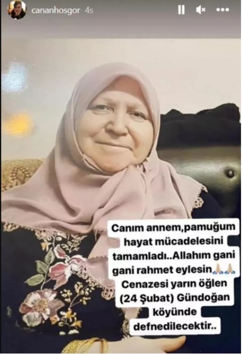 Annesini kaybettiğini kendi instagram hesabından yaptığı “ Canım annem, pamuğum. Hayat mücadelesini tamamladı... Allah gani gani rahmet eylesin. Cenazesi yarın öğleden sonra (24 Şubat) Gündoğan köyüne defnedilecektir.” şeklindeki paylaşımla duyurmuş oldu. Daha sonra yaptığı bir başka paylaşımda da kısa bir süre önce kaybettiği babasının ve annesinin birlikte çekildiği resmin üzerine “ Kısacık ayrı kaldınız, cennet bahçelerinde el elesiniz şimdi...Canım annem, canım babam...” duygusal ifadelerini kullandı..jpg)