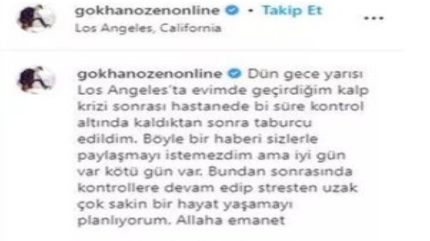 Magazin dünyasında bir son dakika gelişmesi olarak duyurulan ve internet haber siteleri ile sosyal medyada da gündem olan ünlü şarkıcı Gökhan Özen’in kalp krizi geçirdiği bir anda herkesi derin bir endişeye düşürdü. Özellikle 2000’li yıllara damgasını vuran ve seslendirdiği şarkılarla gençlerin sevgilisi haline gelen ünlü isim pek çok şarkısıyla çok yakından tanınıyor. Halen Amerika Birleşik Devleri’nde Los Angeles’te yaşayan Gökhan Özen sosyal medya hesabından kalp krizi geçirdiğini duyurdu. Bu paylaşımın ardından pek çok seveni ünlü isinin durumunu merak ederken geçmiş olsun dileklerini paylaştı. Sosyal medya, internet haber siteleri ve magazin basınında haber olan olay sonrası ünlü ismin durumu en çok konuşulan konular arasına girdi.