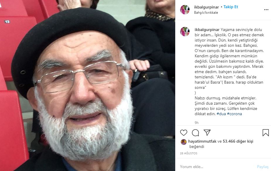 Covid- 19 salgını etkisini arttırarak yayılmaya devam ediyor. Türkiye'de de birçok kişinin hastalanması ve vefatına sebep olan salgının kurbanlarından biri de İkbal Gürpınar oldu. Babası Murtaza Dönmez'i de Eylül ayında kaybeden Gürpınar, "Babamızı Murtaza Dönmez'i maalesef kaybettik. Emanetini bıraktı, gitti. İnnalillah ve inna ileyhi raciun... Mekanı Cennet olsun, Rabbim taksiratını affetsin. Hastalara şifa versin... Ne olur dikkat edin. Ne olur dikkat edin. Bu hastalığın şakası yok" ifadelerini kullanmıştı.
